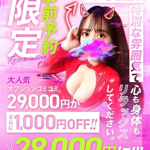 - 全OPコミコミ価格!! 90分29,000円 ホイップ、リンパドレナージュ30分、衣装チェンジ、ずっと仰向け 写真指名料 全てコミコミ価格になります!